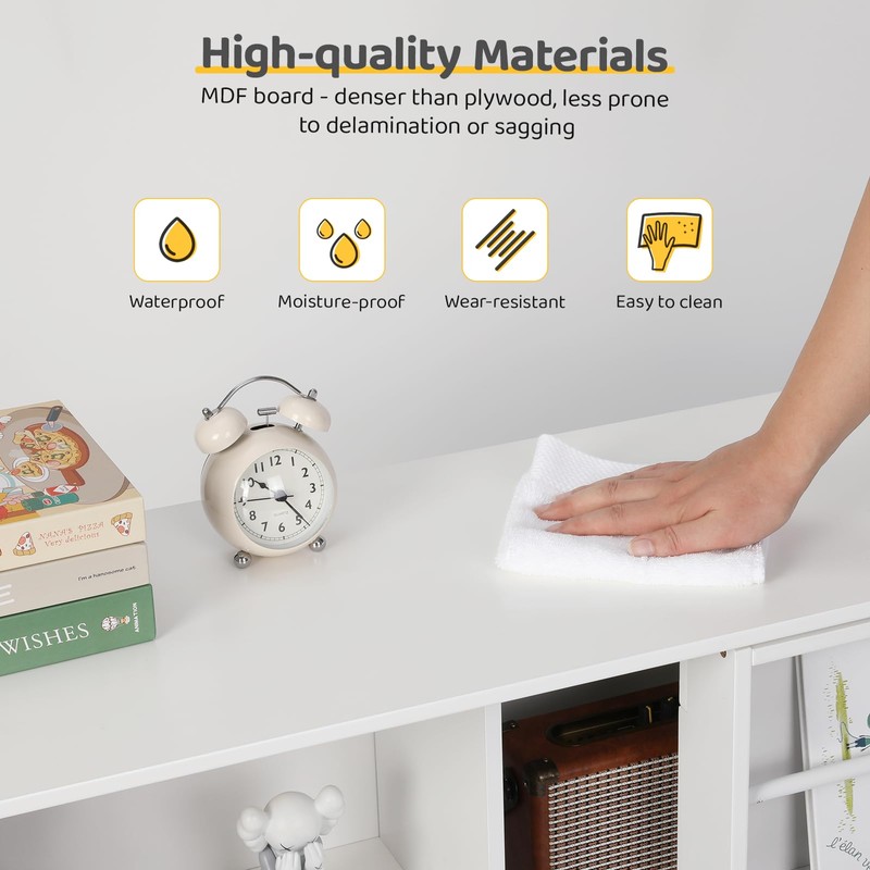 - Sturdy & Stylish - The shelf is made of MDF board, with a smooth waterproof white paint surface which is wear-resistant and easy to clean. And the white design matches a variety of home styles.