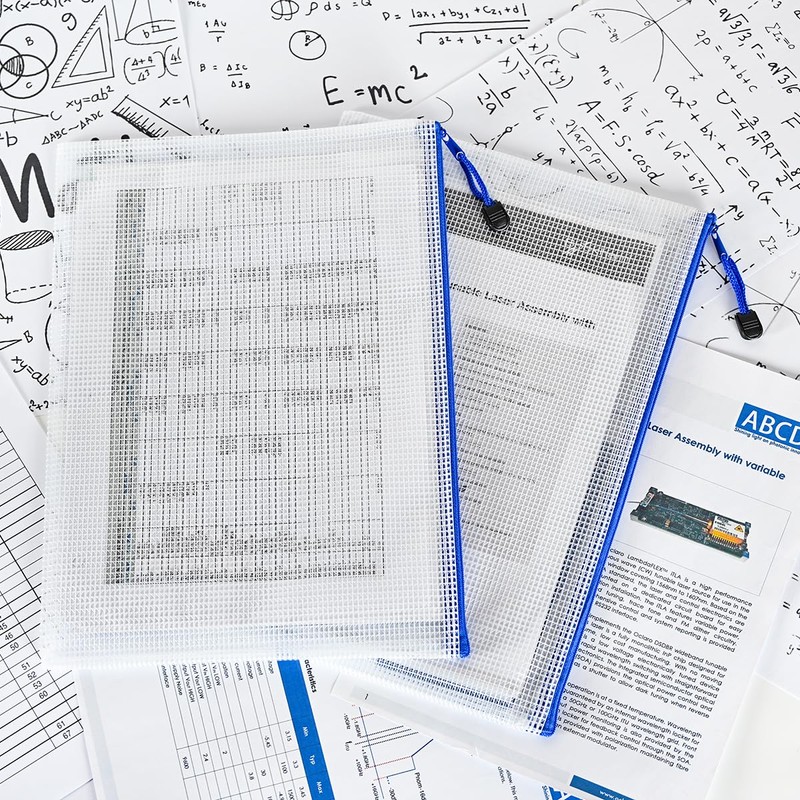 • ★ Zip lock document file folders with translucent mesh design. A solid PVC grid layout with moderate transparency and easy file search, great document bag.