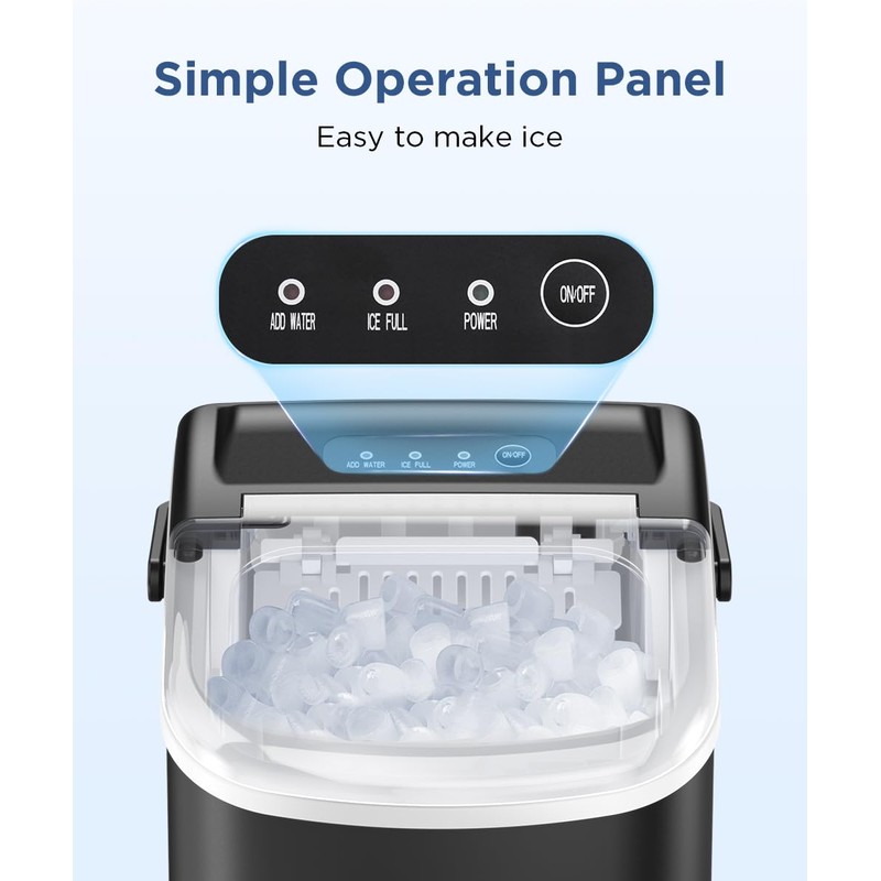 - 【SELF-CLEANING & BULLET-SHAPED ICE CUBES】Our ice makers countertop is equipped with a self-cleaning function. Simply add water to the tank and long-press the "On/Off" button for 5s to initiate automatic cleaning. It produces round, smooth, bullet-shaped ice that won't hurt your hands and is usually used to cool drinks and food.