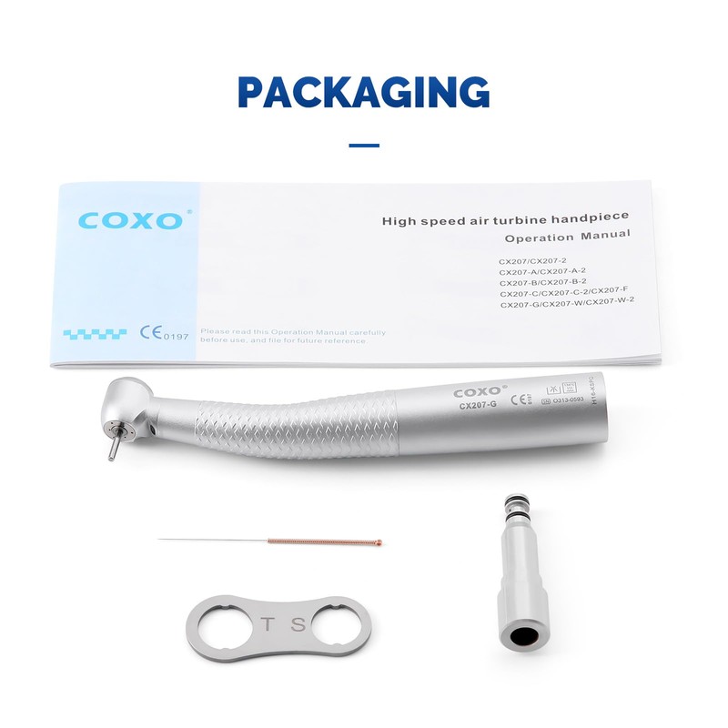 Coxo CX207-G Fiber-Optic High-Speed Air Turbine Handpiece, Standard Head, 3-Port Spray, #H16-KSPQ, Sold by JMU