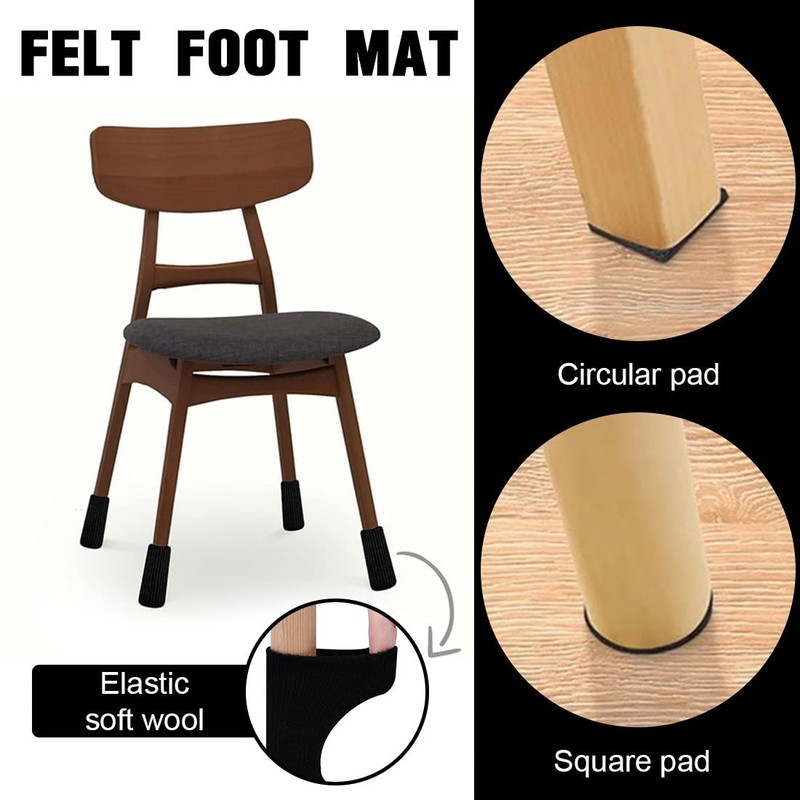 - Felt design: chair leg caps. The underside of the pad is made of high-quality round felt, which can effectively protect floors such as wood and tiles and prevents scratches on carpets and furniture legs. Reduces the noise when moving the chair and allows the chair to glide smoothly.