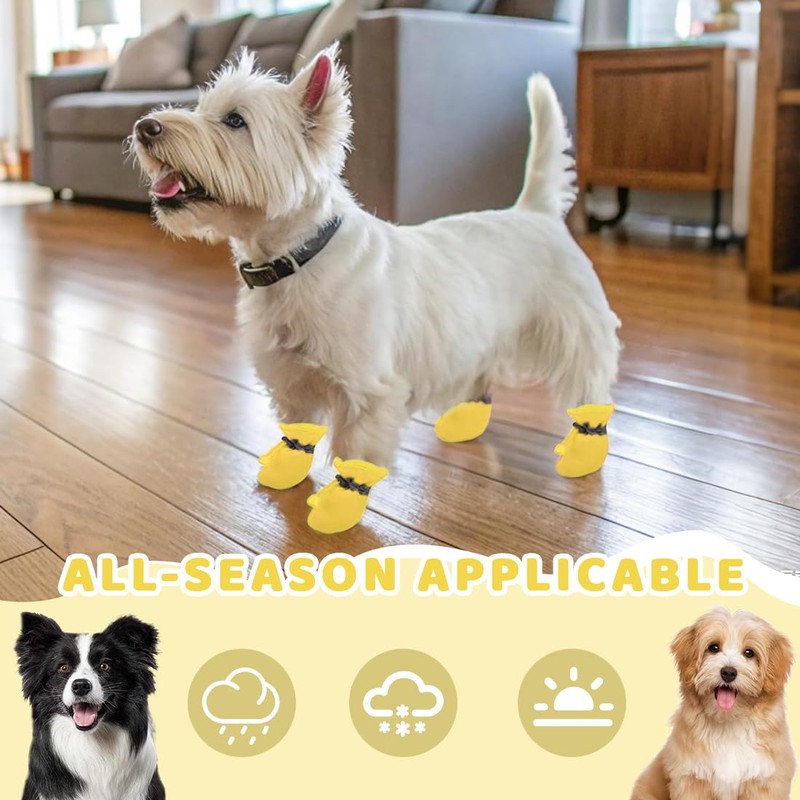 COYUN Pack of 4 Dog Shoes, Dog Boots, Paw Protection, Non-Slip Dog Boots, Dog Shoes with Reflective Straps, Dog Shoes, Paw Protection, Adjustable, Paw Protectors for Small Dogs, Yellow