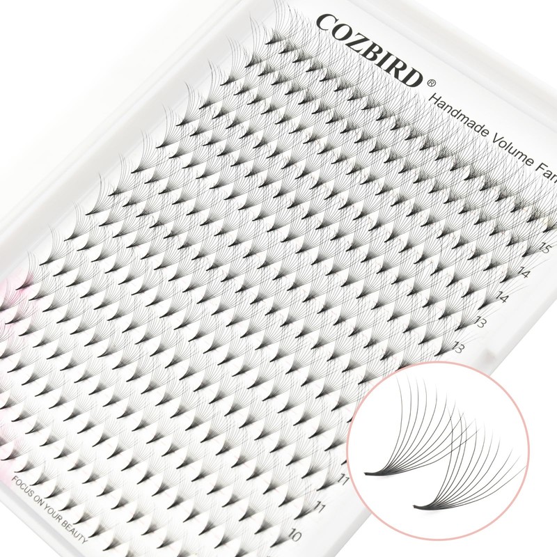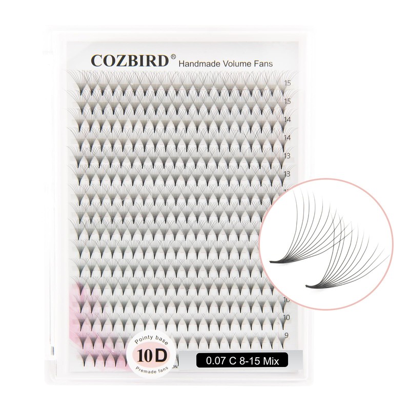COZBIRD Premade Fans 10D Eyelash Extensions 320 Fans Volume Lash 0.07mm D curl 12mm Pointy Base Sharp Narrow Stem Fluffy Matte Black Soft