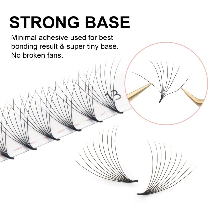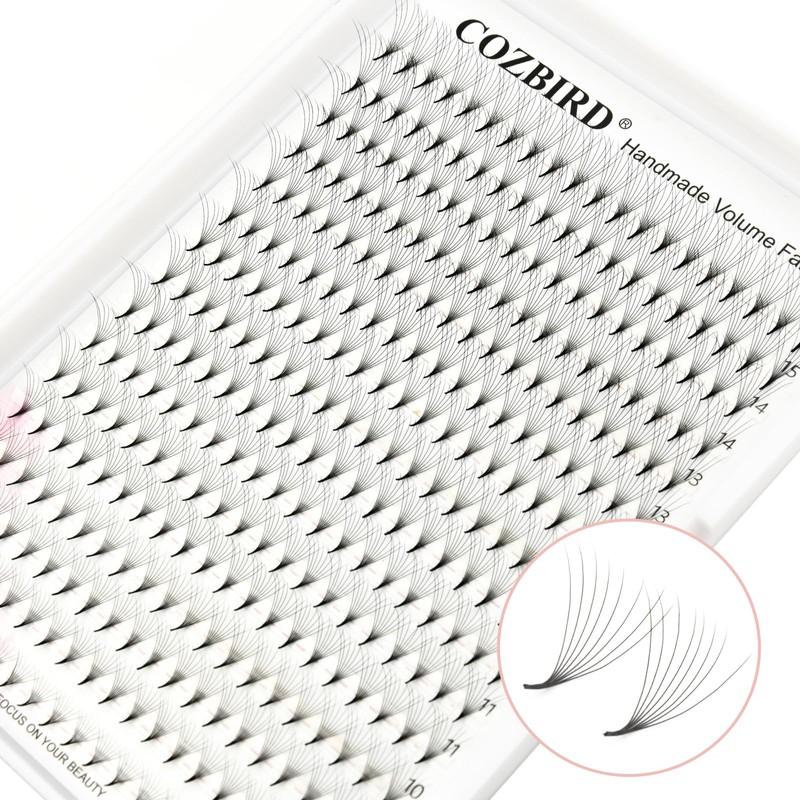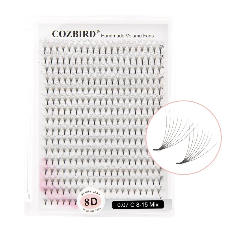 COZBIRD Premade Fans 8D Eyelash Extensions 320 Fans Volume Lash 0.07mm D curl 12mm Pointy Base Sharp Narrow Stem Fluffy Matte Black Soft