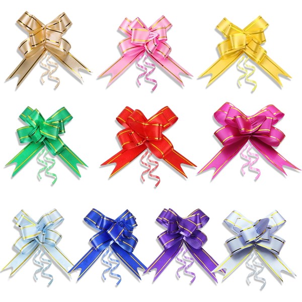 - BRIGHT DECORATIVE COLOR: Our pull bows have many different colors. Random delivery decorated with gold lace,you can choose the different color bows according to different occasions,which will make your gifts more attractive and adorable