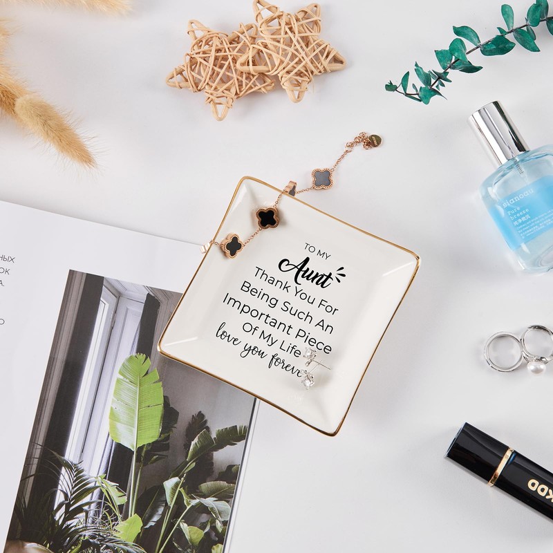 - Gifts for Aunt: "To my aunt, thank you for being such an important piece of my life. Love you forever." Cozited aunt-themed jewelry dish with the delicate design and heartfelt message make it a perfect gift for aunt on any special occasion, such as a Birthday/Christmas/Mother's Day/Valentine's Day.