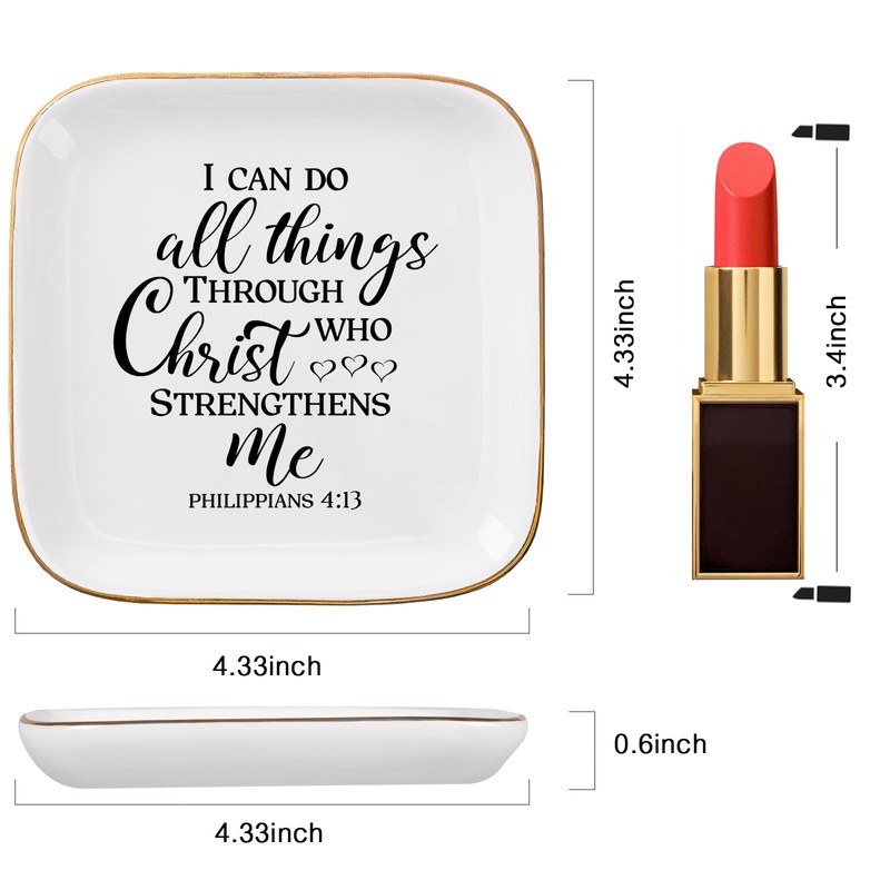- Inspirational Gifts for Women: " I Can Do All Things Through Christ Who Strengthens Me”, with inspirational words, this religious Christian trinket dish makes a special gift for women. Whether it's for your best friend, coworker, mom, wife, daughter, sister, grandma, aunt, niece, or female friends, it's sure to make her feel cherished and loved. Give them faith, strength, and hope. Christian birthday gifts for women, get well soon gifts for women, faith gifts.