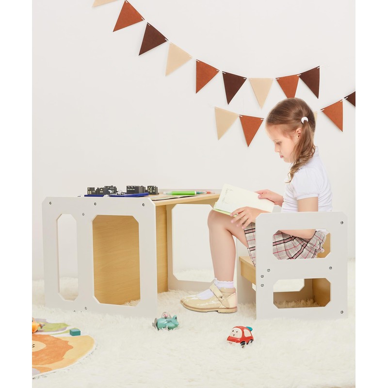 - Multi-functional Kids Desk and Chair Set: This children's activity table set is designed such that the desk can also be used as a chair and footrest. It not only provides a space for kids to learn, eat, and play but also offers a place for interaction between adults and children, creating an environment for children to develop and learn independently