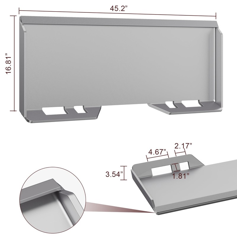 - VERSATILE ATTACHMENT COMPATIBILITY: Measuring 46" x 18.5", our Skid Steer Mount Plate is designed for easy customization of your equipment. With its quick-tach hookup capability, you can effortlessly weld or bolt this plate to different attachments, enhancing the functionality of your skid steer for a wide range of tasks