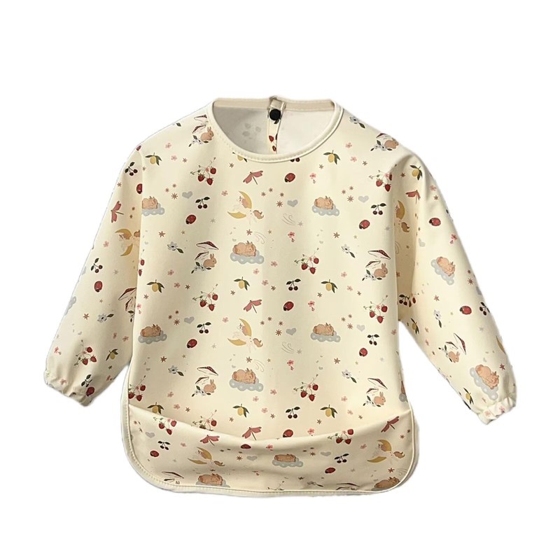 - Long sleeves: the bib with arms is designed with rubber bands at the cuffs to help your little one take on