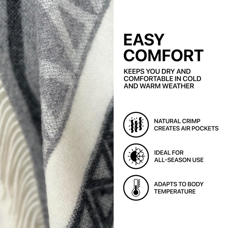 Wool's natural crimp creates air pockets that retain heat while repelling moisture. The result is a breathable, absorbent, and insulating fabric that adapts to your body temperature, making it ideal for every season. Whether you use them indoors or outdoors, these blankets will cover you in comfort.