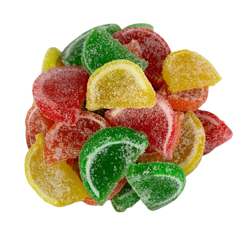 Our mini assorted fruit slices are a colorful and flavorful treat, offering a taste of your favorite fruits in every bite. These soft, chewy slices come in vibrant flavors of orange, lemon, lime, and cherry, each bursting with a sweet and tangy goodness. Coated in a light layer of sugar, they have a delightful texture that enhances their fruity taste. Perfect for snacking or sharing, these mini fruit slices bring a burst of juicy flavor to any occasion.