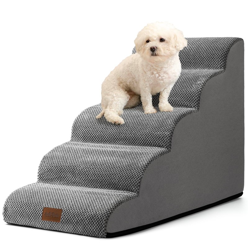 COZY KISS Dog Stairs for High Bed 23" H, Small Dogs Ramp with Leakproof Fabric Cover, Foam Pet Steps for Cat, Couch and Sofa, Lightweight, Non-Slip, Durable, Comfort, 15.7x33x22.6in, Grey, 5 Tiers
