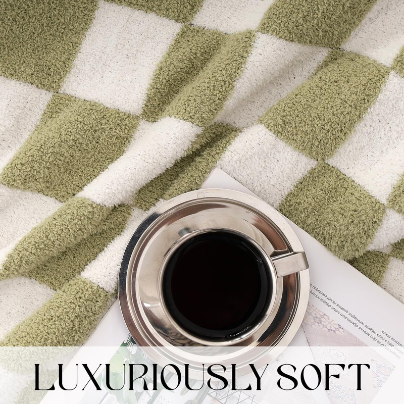 Cozy Knit Throw Blanket - Ultra Soft & Warm Checkerboard Grid Pattern Fluffy Polyester for Couch, Bed - Gift for Women, Mom, Daughter (50x60 in, Green)