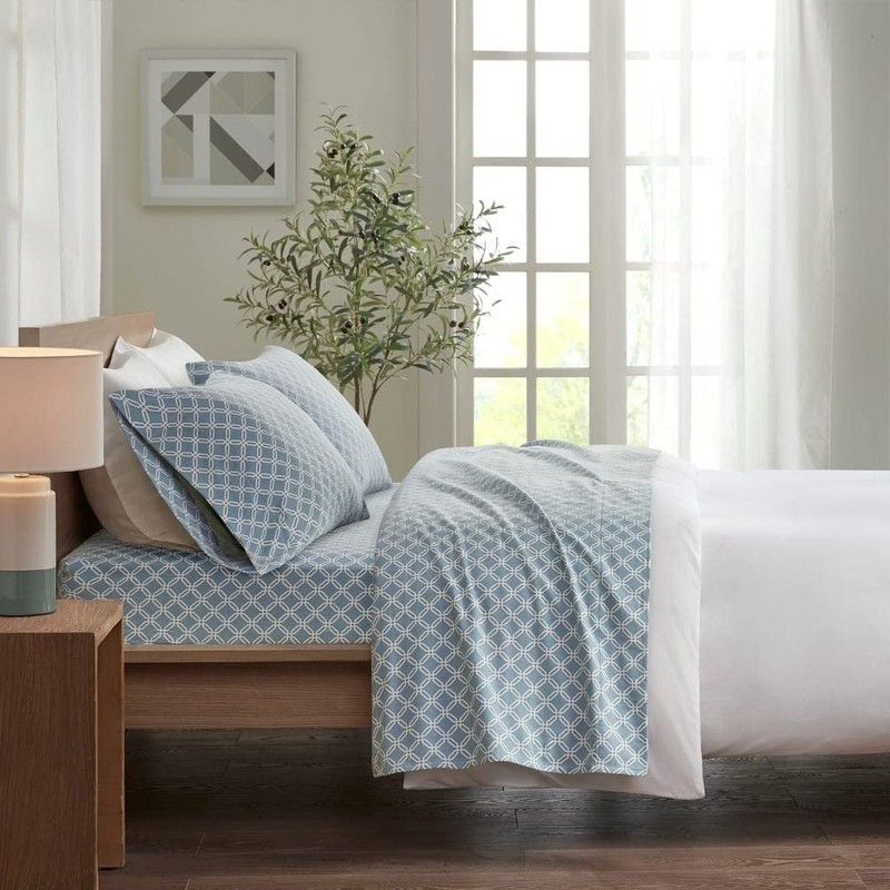- Cozy Sturdy 100% Cotton Weave Flannel Sheet Set | Diamond Artful Print in Soft Subtle Hues | Durable All Season Extra Deep Pocket Aesthetic Bedding | 3 Piece Twin Size Pretty Aqua Blue White Shade