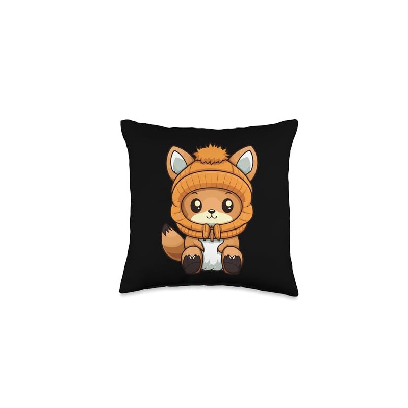 Cozy Winter Comic Mood Cute Squirrel Winter Comic Kawaii Animal Cozy Throw Pillow, 16x16, Multicolor