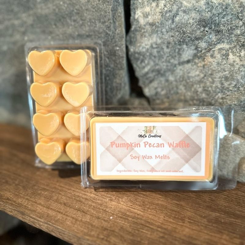 Indulge in the cozy scents of Fall and Winter with our Scented Soy Wax Melts. Made with high-quality soy wax, each pack includes 8 cubed wax melts that easily fit any standard wax warmer. Experience the comfort of Fall with our carefully curated selection of scents, including warm cinnamon, crisp apple cider and spiced pumpkin. As the season transitions to Winter, enjoy fragrances like peppermint bark and vanilla snowflake that will leave your home smelling delightful. Crafted from natural soy wax, these melts are eco-friendly and long-lasting while providing a safe alternative to traditional candles. Transform your home into an inviting sanctuary this season with our Fall & Winter Scented Soy Wax Melts! These are roughly 3-4 oz/each clamshell. Due to the nature of our coloring, each batch may vary with the coloring. SCENTS: •Sugar cookie is a sweet sugary aroma of a fresh baked sugar cookie. •Reindeer Poo has top notes of apples & pears with eucalyptus, pine and base notes of vanilla & cedar wood. •Pine Forest is a pleasant blend of fir and balsam. •Country Christmas is a blend of bayberries, cranberries, and apples, with notes of nutmeg and cloves with a top note of orange zests. •Winter has spicy clove notes sprinkled with fir balsam notes and amaryllis background. •Alpine Cheer is scented with warm balsam notes combining with spice hints of cinnamon and clove with an undertone of sandalwood and cedar wood. •Birchwood Pine is a perfect blend of pine, balsam, and birchwood. •Winter Berry is scented with holly and juniper berries with hints of white musk and vetiver. •Cinnamon Buns is a fresh, warm and buttery cinnamon topped with a sugary icing. •Cranberry Apple Marmalade is scented with cranberry and juicy red apple sprinkled with cinnamon spice. •Sugar Plum Dream is scented with purple plums, velvety vanilla, and sugary musk. •Winter citrus wreath is scented with balsam wreath, fresh citrus, and a hint of forest breeze. •Fresh Sparkling Snow smells like a cool, fruity blend of frozen melon, winter berries, citrus oranges and frosted musk. •Spiced Apple Toddy is scented with a blend of spices combined with zesty notes of apple and cranberry. •Merry Mimosa smells like sparkling champagne, red apple slices, iced sugar crystals. •Butter Rum Eggnog is scented with spiced nutmeg that complements the warm, rich butter rum bourbon. •Perfect Christmas is scented with evergreen fresh cut pine, sweet cinnamon sugar, and toasted marshmallow treats. •Cocoa Butter Cashmere is scented with vanilla tonka, warm coconut, and jasmine petals. •Vanilla Bean Noel is scented with a warm blend of fresh vanilla bean, warm caramel and cream. •Sweater Weather is a fresh fall fragrance with crisp, woodsy notes. •Pumpkin Pecan Waffle is a mouthwatering warm pumpkin waffle topped with butter, fresh roasted pecans, brown sugar drizzled with maple syrup. •Apple Cinnamon is a crisp & inviting tart apple and warm cinnamon scent! *Flannel is a warm blend of bergamot, mahogany and a delicate veil of musk. *Spiced Gingerbread smells like grandma's homemade gingerbread and the warm notes of cinnamon, clove, ginger, nutmeg, and vanilla beans. *Winter Candy Apple smells like crisp Ruby Red apples, rose petals, zesty orange candy, and a hint of maple.