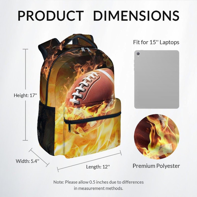 COZYAURA School Backpack for Boys - 17 Inch Fire FootBall Bookbag for Football Lovers - Lightweight Sports School Bags for Kids - Elementary School Backpack
