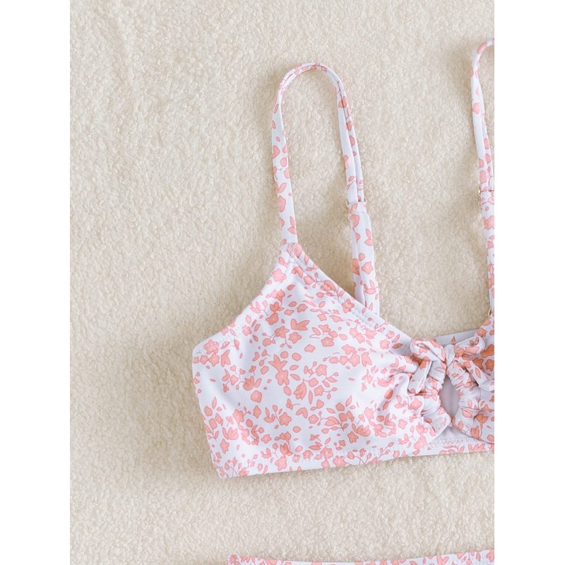 COZYEASE Girls' 2 Piece Ditsy Floral Print Knot Front Ruched Triangle Bikini Swimsuit Multicolor 8-9Y
