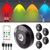 - 9 Dimmable and 2 RGB Dynamic Modes - The LED puck lights with remote offers 9 colors and 2 RGB dynamic modes. In smooth mode, 13 vibrant colors of light will cycle in and out to create a great atmosphere. In fade mode, the brightness of single-color will transition slowly, like a gentle breathing light