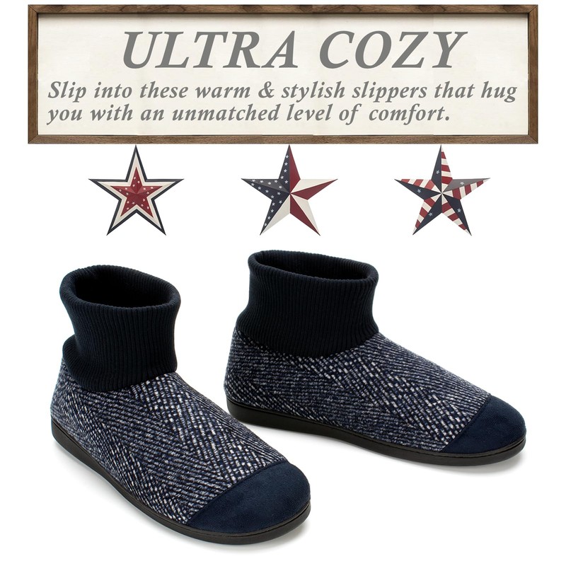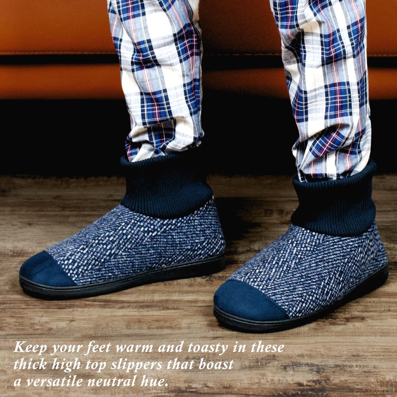 Cozylook Men's Slippers with Knitted Cuff Cozy Memory Foam Non-slip Indoor Outdoor Slipper Socks with Rubber Sole Navy Blue Size 8-9