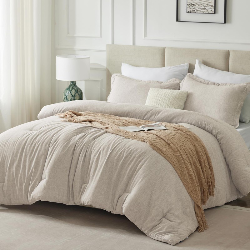 - Soft Material Selection: Made with double brushed microfiber, our comforter set features innovative cationic dyeing process, the color will be very uniform and natural, without fading. With texture, the pattern is luxury than the plain beige ones.