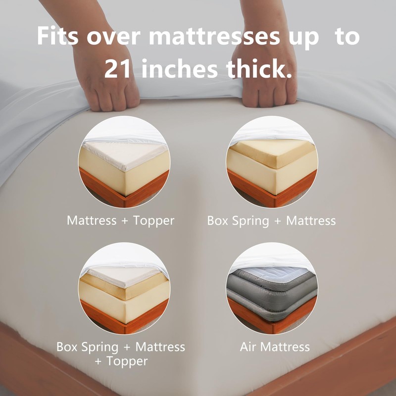 Feature Design: 21 inches extra deep pocket fit mattress up to 21 inches.