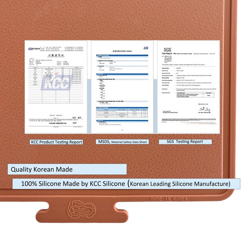 • 【Quality Made in Korea】 The cutting board is quality made in Korea. It made with top graded silicone rubber, Stain-proof, stick-resistant, will never tarnish or discolor; Meticulously designed to serve you for many years. It is safe from any chemical substances and their reactions. Silicone material is never changed or reacted with the hot water.