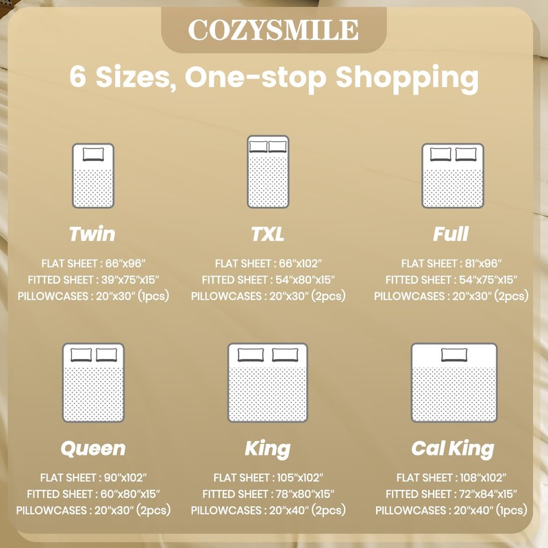 • VERSATILE SIZES & COLORS - Experience the perfect fit with our bedding sheet set, available in 6 sizes (Twin/Twin XL/Full/Queen/King/Cal King) and 9 elegant colors. Each set includes a fitted sheet, flat sheet, and 2 pillowcases (Twin size includes 1 pillowcase).