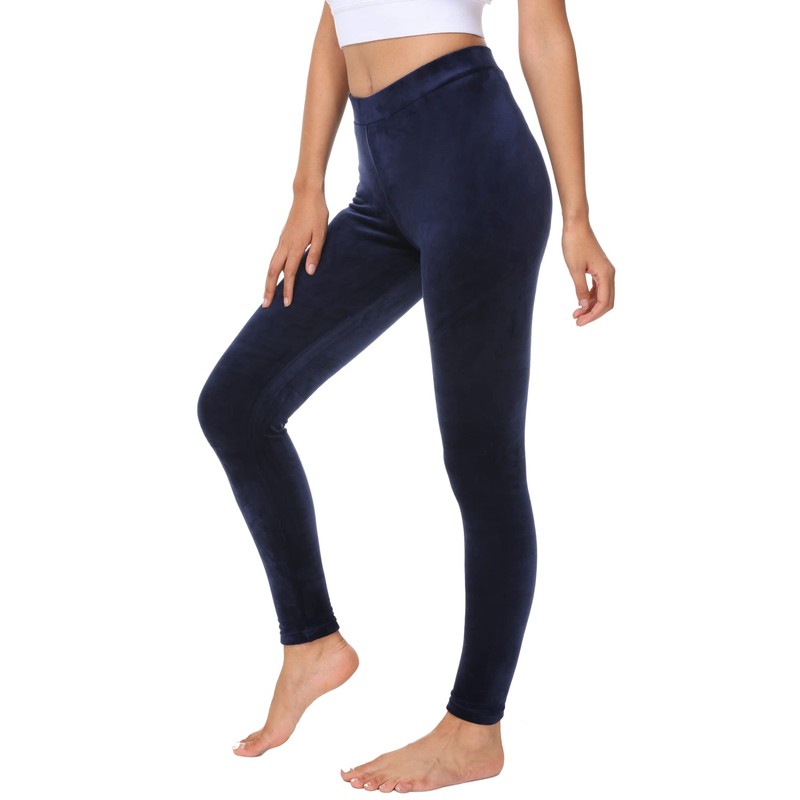 COZZYON Women Velour Leggings, High Waist Soft Leggings Warm Winter Velour Yoga Pants(Navy,L)