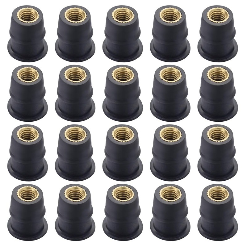 - HIGH QUALITY MATERIALS Our nuts are made of high quality rubber shells and brass inner nuts. You can rest assured that they are sturdy and durable, not easy to be damaged and deformed, and have a long service life. This is a practical and necessary motorcycle accessory