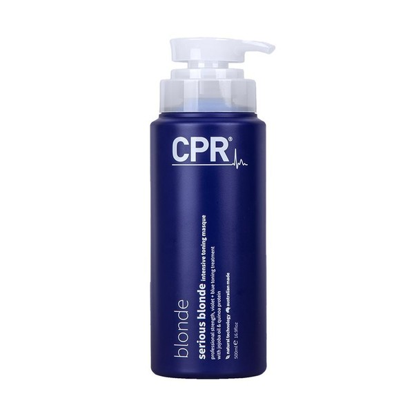 Introducing the Vitafive CPR Serious Blonde Toning Masque 500ml. This powerful toning masque is specially formulated to revive and enhance blonde hair, leaving it vibrant and nourished. What are the features and benefits of Vitafive CPR Serious Blonde Toning Masque 500ml? Neutralizes brassy tones and enhances blonde color Deeply conditions and moisturizes hair Restores shine and vitality to dull, damaged hair Protects against environmental damage and color fading Who is Vitafive CPR Serious Blonde Toning Masque 500ml for? This toning masque is perfect for anyone with blonde hair who wants to maintain a vibrant, salon-worthy color while keeping their hair healthy and nourished.