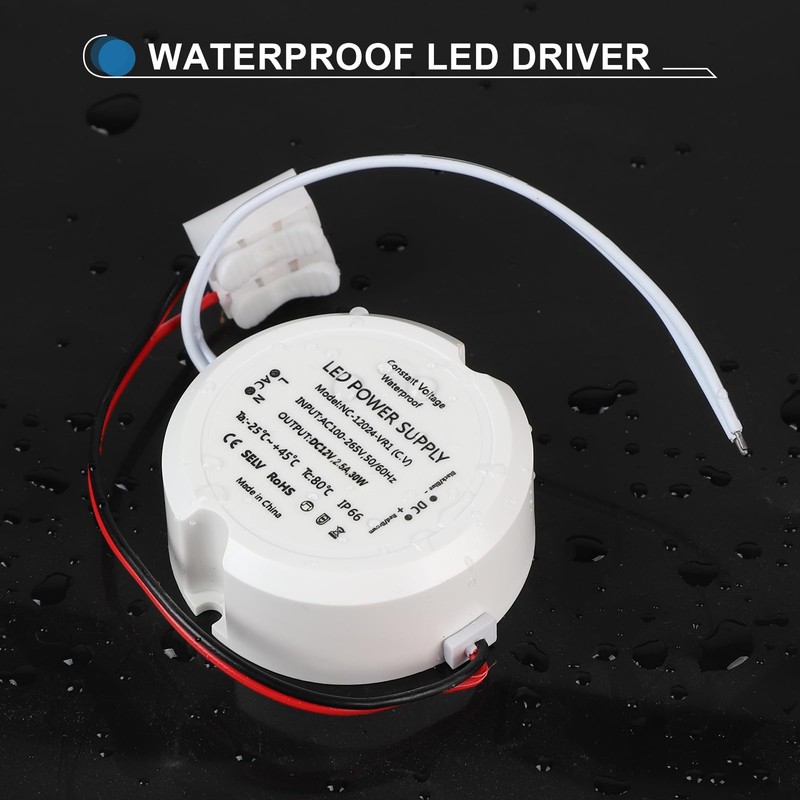 CPROSP LED Transformer Round 12 V 30 W with Wiring Plug, Power Supply Driver 230 V to AC 12 V, Mini Power Supply 55 x 23 mm, Transformer for LED Lamps, Waterproof IP66
