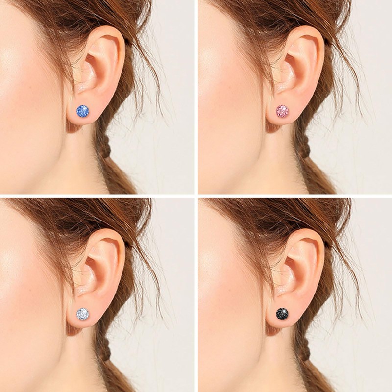 CPSLOVE Women's Crystal Balls Earrings Elegant 925 Sterling Silver Earrings Studs for Girls 8mm Sparkling Zircon Studs Wedding Jewellery Set of 4 Pairs
