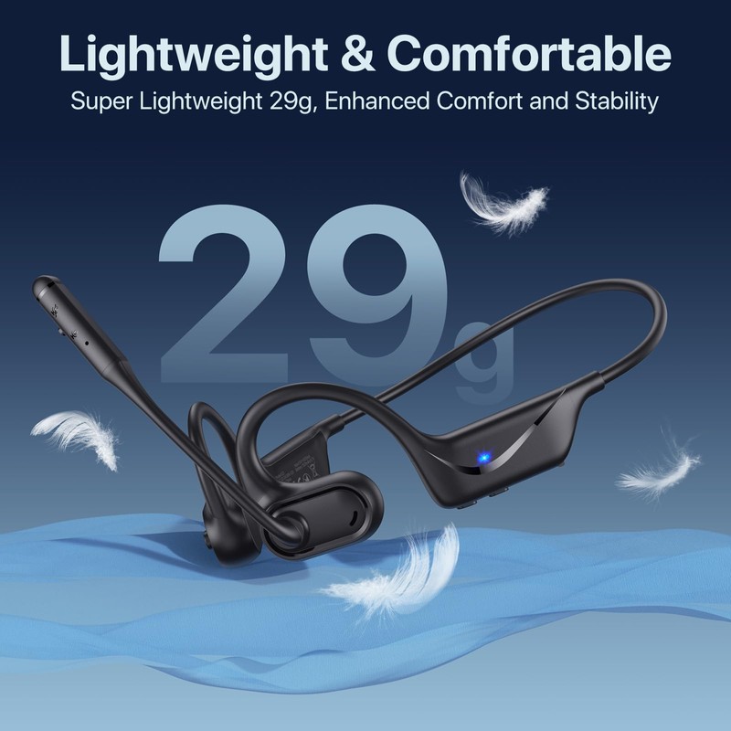 - Lightweight and Comfortable - Weighing only 29g, this headset is ultra-light and designed with skin-friendly materials for maximum comfort, even during extended wear. Durable and built to last, this Bluetooth headset with a microphone is anti-fall and flexible, making it the perfect companion for school, work, or outdoor activities.