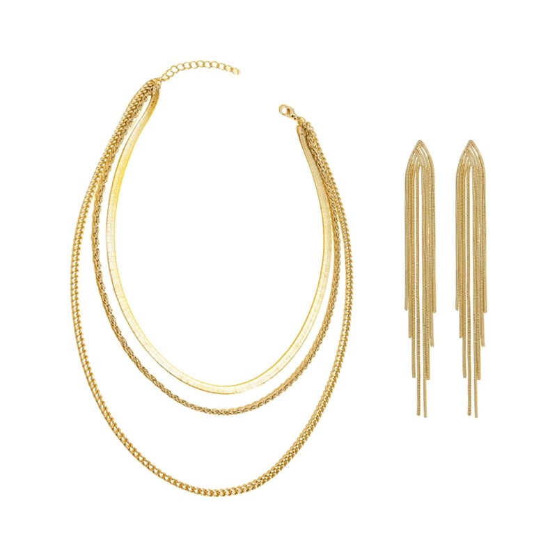 - 【Product Content】You Will Receive 1 Pair Of Tassel Earrings And 3 Stacking Necklaces. The Size Of The Tassel Earrings Is 10*3.8Cm And The Color Is Gold; The Stacking Necklaces Are Available In Various Sizes And The Color Is Gold, Suitable For Matching With Various Clothing And Occasions.