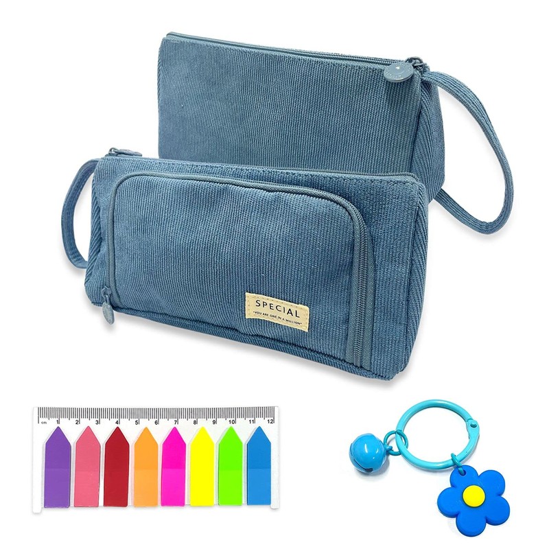 - [Package includes] 1 blue pencil case, 1 blue flower ornament, 1 note with 8 color arrows.