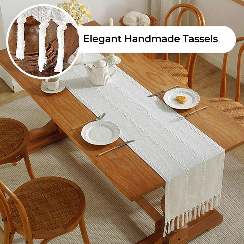 - 【Product Content】You Will Receive 1 Piece Of Tassel Tablecloth, The Size Is 33*183Cm, The Color Is Beige, Suitable For Table Decoration And Home Decoration.