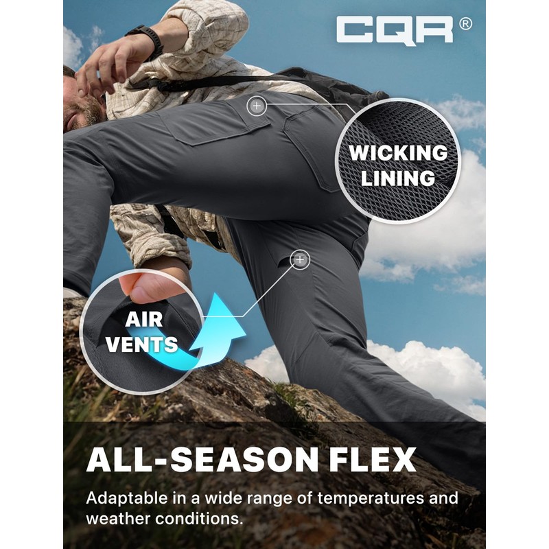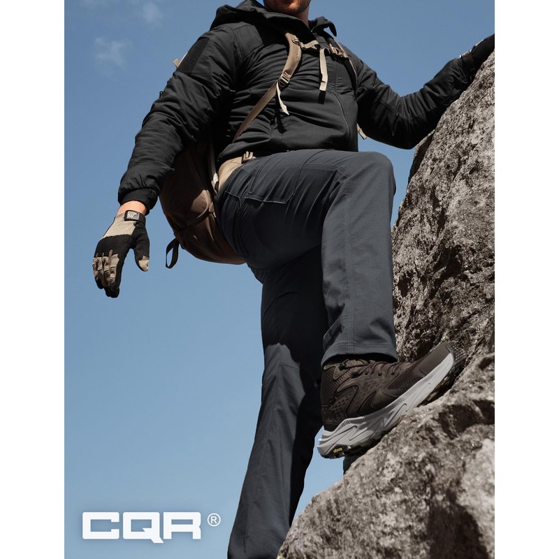 CQR Men's Cool Flex Tactical Pants, Water Resistant Lightweight Stretch Cargo Work Hiking Pants, Sierra Charcoal, 38W x 30L