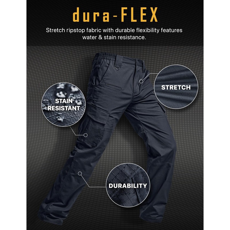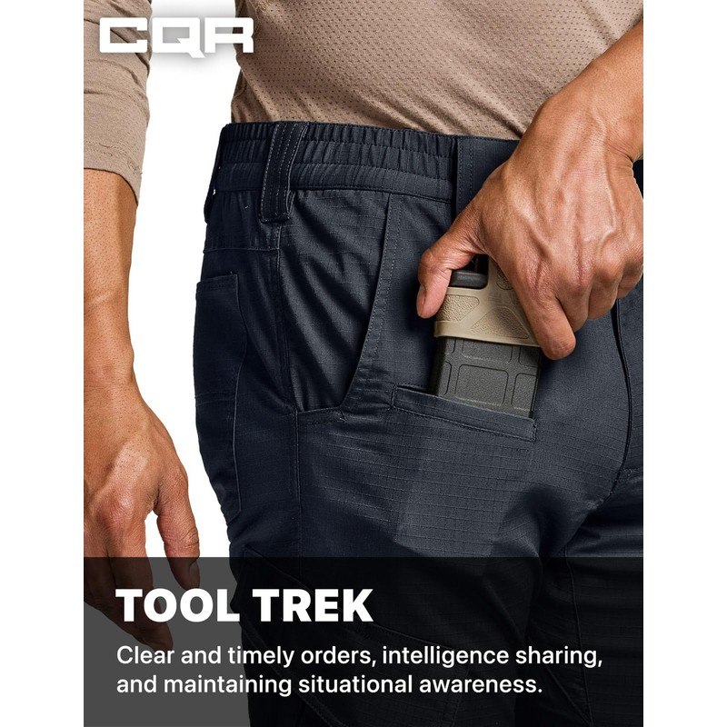 CQR Men's Flex Ripstop Tactical Pants, Water Resistant Stretch Cargo Pants, Lightweight EDC Hiking Work Pants, Dura Flex Operator Navy, 38W x 30L