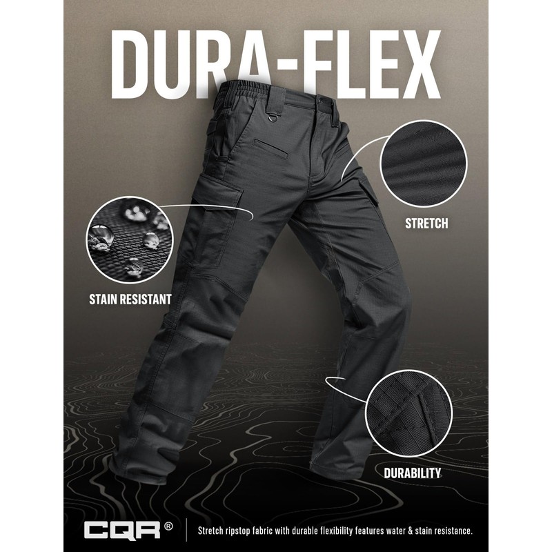 CQR Men's Flex Ripstop Tactical Pants, Water Resistant Stretch Cargo Pants, L...