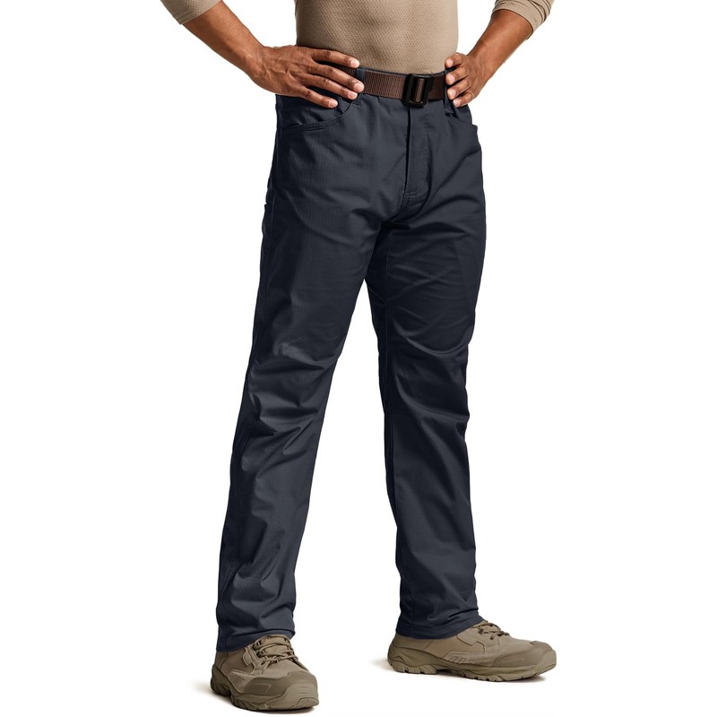 CQR Men's Flex Stretch Tactical Pants, Water Resistant Ripstop Cargo Pants, Lightweight EDC Outdoor Work Hiking Pants, Tac-Stretch Operator Navy, 30W x 32L