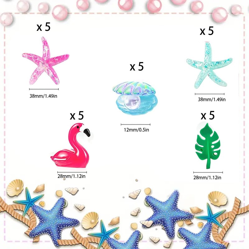 - Eye-Catching Ocean-Themed Decor Featuring vibrant designs and classic sea elements like fish , starfish, and shells, these fillers add a charming and festive atmosphere to any setting.