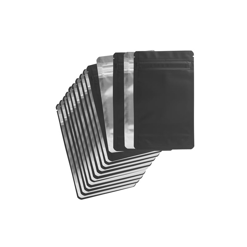 - [ MATERIAL ] Child resistant packaging bags made of (PET/VMPET/PE) premium materials. The Child proof style zipper is designed to adhere to the child resistant standards. The superior locking zipper is very strong and produces a tight seal. The baggies thickness is 4 MIL.