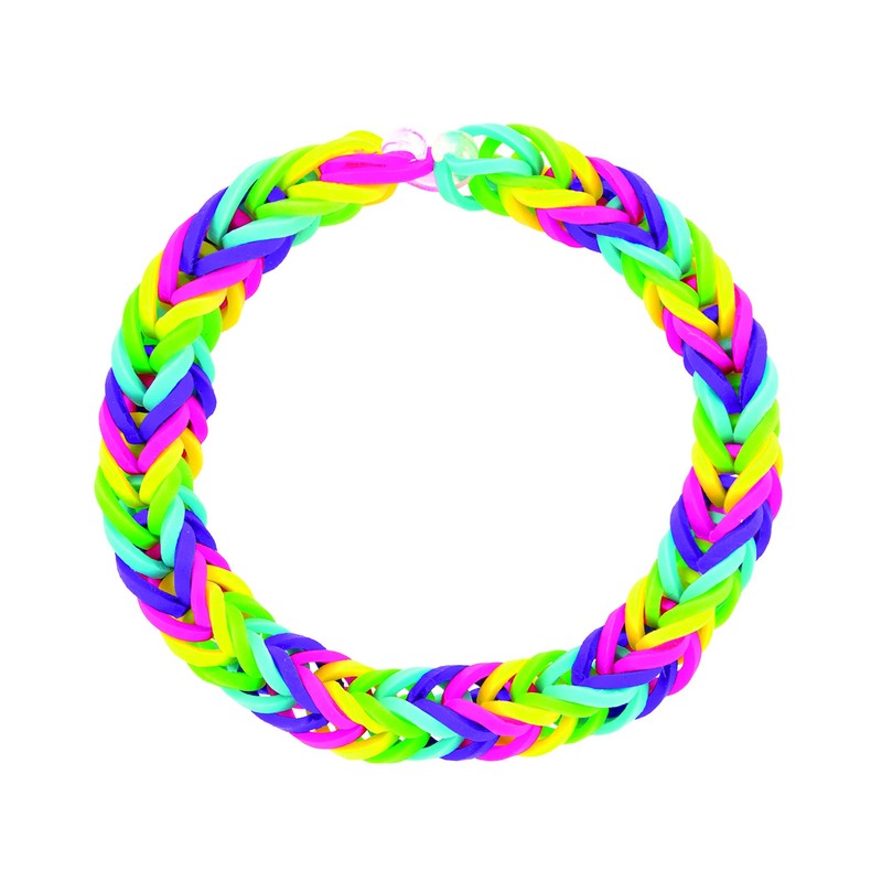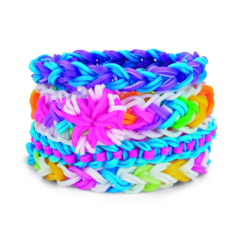 - Cra-Z-Art rubber bands for bracelet making comes with pink, red, violet, purple, blue, green, yellow, and white rubber bands