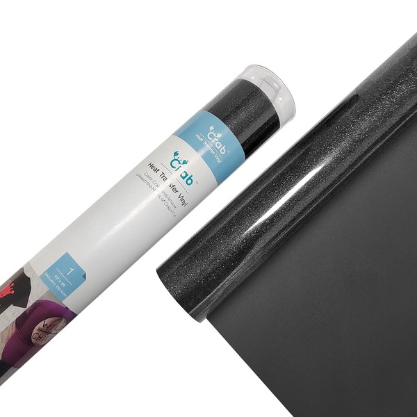 Crab HTV Heat Transfer Vinyl Roll - Glitter 12” x 5ft, Easy to Cut & Peel Iron on Vinyl for DIY T-Shirts Bags Gifts Design Compatible Cricut, Silhouette Cameo, Heat Press, Cutter Machine (Black)