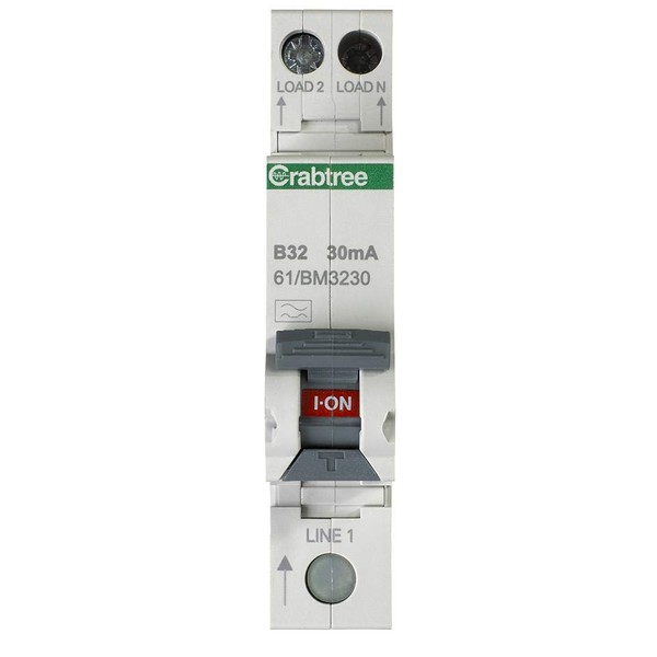 Crabtree 32A 30MA RCBO Single Module B Curve | RCBO RCD GFCI AFDD Circuit Breakers, 1 X Qty - 61/BM3230