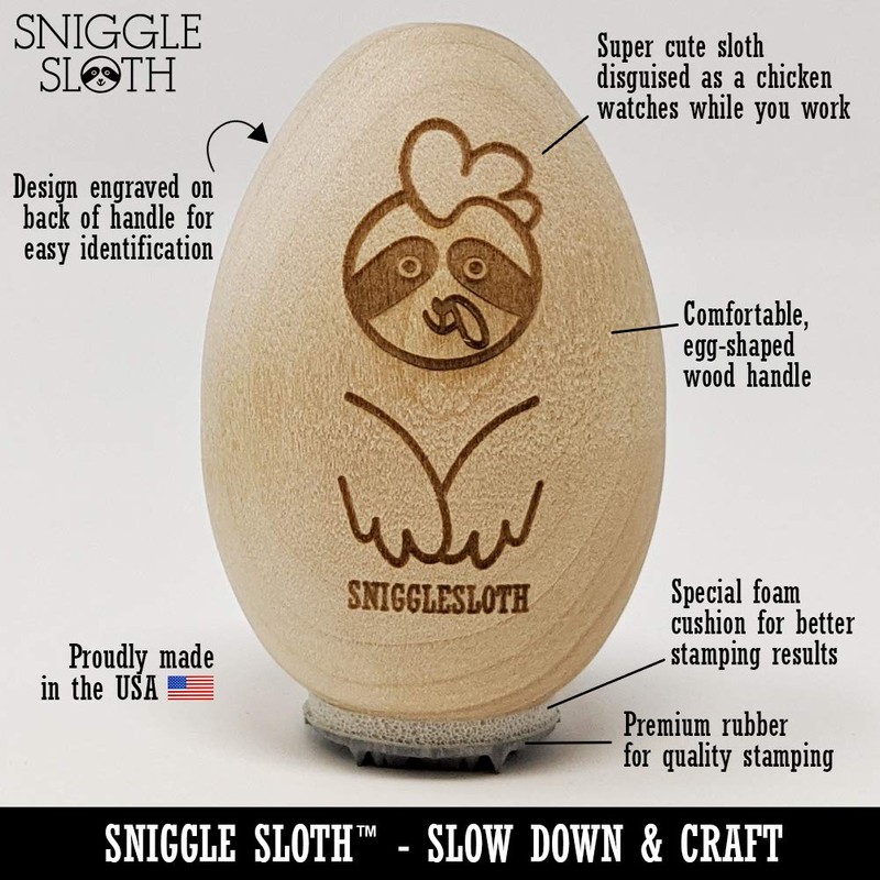 - DIY FUN - You've never seen a wooden stamp handle quite so cute or useful! The egg-shaped wood handle features our Sniggle Sloth mascot disguised as a chicken on one side, and the stamp design for easy identification on the other side.
