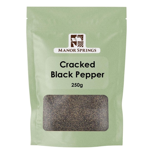 • Handpicked and Coarsely Crafted: Manor Springs takes pride in the craftsmanship of our Coarse Ground Cracked Black Pepper. Handpicked and coarsely crafted, these peppercorns undergo a meticulous process to ensure that the distinct and fiery flavour is retained, delivering an authentic taste sensation.