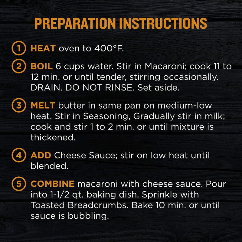 - Oven-baked with award-winning sharp cheddar for a delicious macaroni and cheese dinner